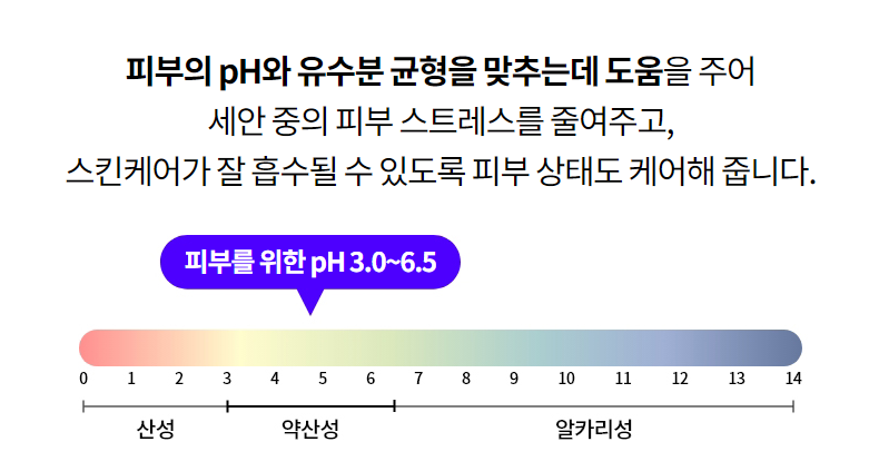 - 약산성 pH로 건강한 피부 균형 유지시켜줌